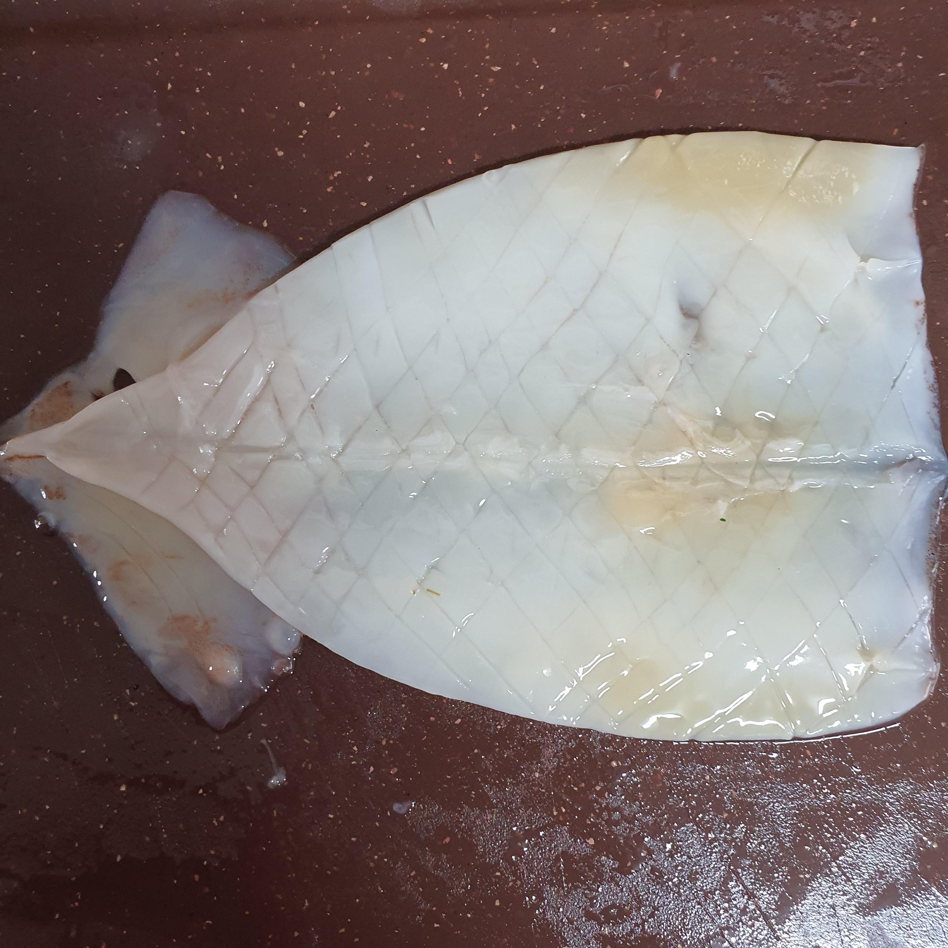 꿀팁 - 오징어는 십자로 모양을 내면 나중에 먹을 때 더욱 부드럽고 모양도 이쁩니다.